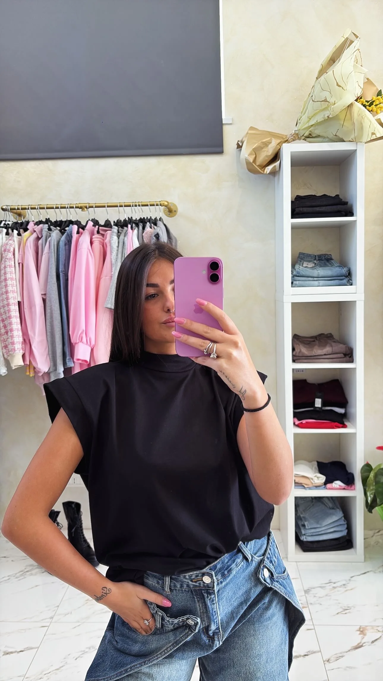 T-shirt boxy fit con spalline, in taglia unica, disponibile in diversi colori